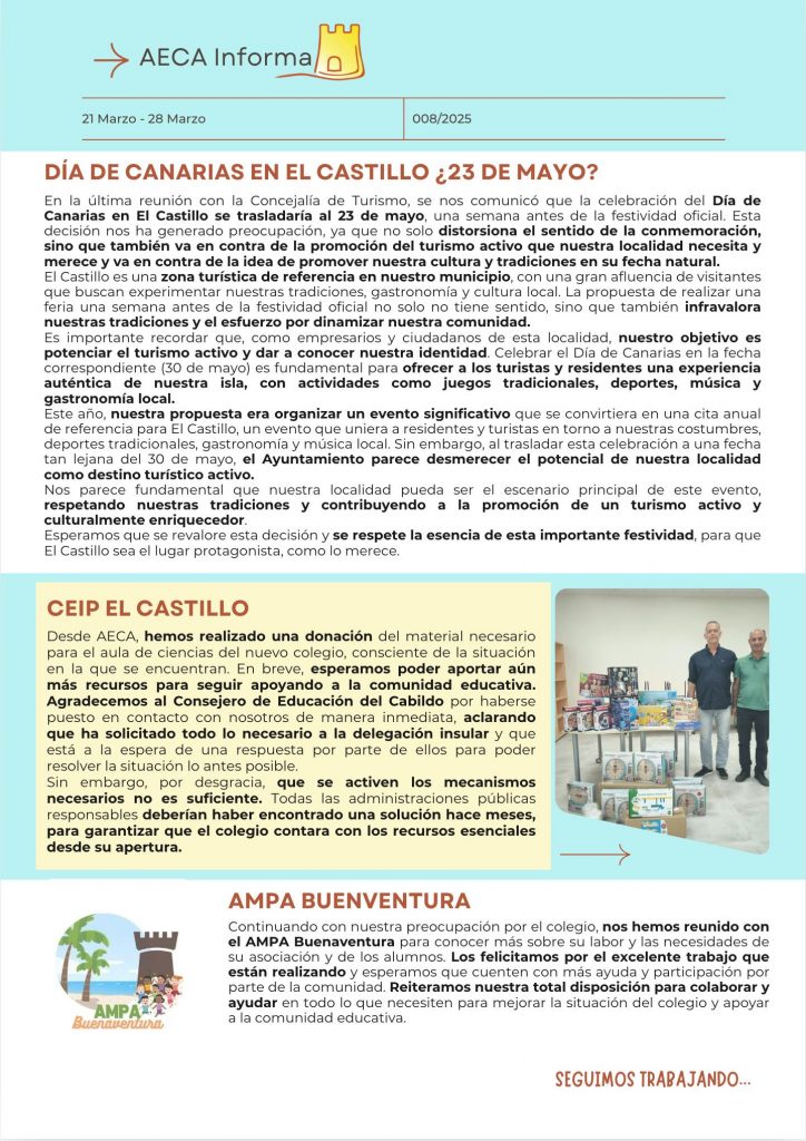 Durante los últimos meses, una empresa externa especializada ha llevado a cabo un análisis detallado sobre la situación actual de El Castillo. El resultado es un diagnóstico técnico e independiente que identifica los principales problemas estructurales que afectan al desarrollo del destino, a la calidad de vida de los residentes y a la sostenibilidad del…